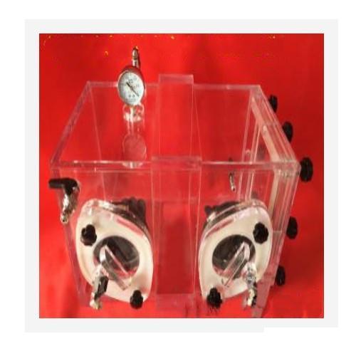 有機玻璃真空操作箱是用高透明度的無色有機玻璃制作的,主要用來進行在大氣狀態(tài)下極易氧化和潮解的物質(zhì)與空氣隔離的科學實驗。